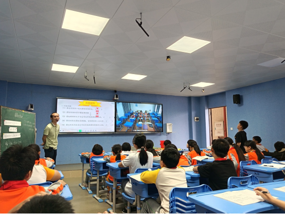 2025年3月13日,陈老师在学校同步课堂教室进行《圆锥的体积》课堂教学展示。校领导和全体数学老师到场听课,还有橡胶研究所学校的六年级师生也早早连线观摩。随着急促的上课铃声响起,陈老师开始了他精彩的课堂教学。