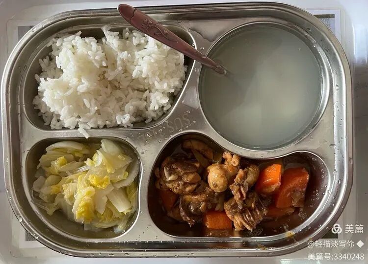 午餐:椰奶土豆炖鸡、娃娃菜炒粉丝、冬瓜骨头汤、软米饭
