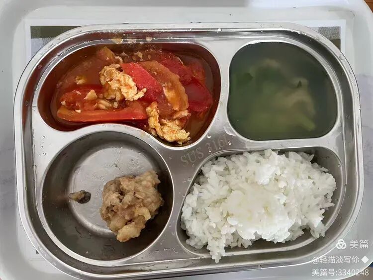 午餐:清蒸狮子头、西红柿炒鸡蛋、平菇青菜骨头汤、软米饭