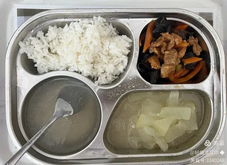 午餐:木须肉、素炒冬瓜葱花、豆芽骨头汤、软米饭