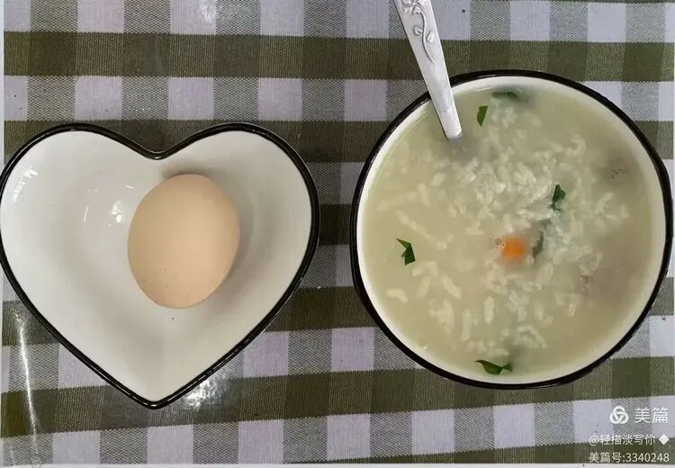 早餐:青菜南瓜瘦肉粥、水煮蛋