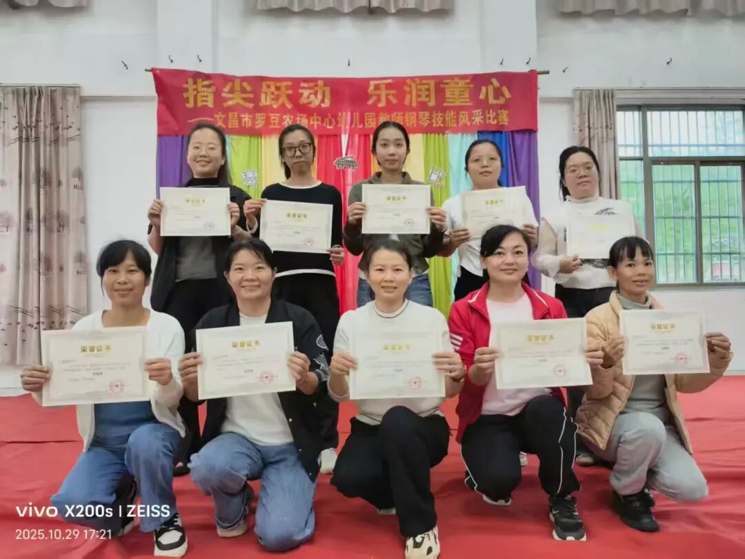 钢琴是幼儿教师必备的基本功,而音乐素养又是启蒙教学很重要的一部分。为了进一步贯彻落实《幼儿园教育指导纲要(试行)》,《3—6岁儿童学习与发展指南》和《幼儿园保育教育质量评估指南》精神,全面提高教师专业技能素养,提升教师团队的综合素质。我园于2025年10月27日下午,在多功能室举办“指尖跃动,乐润童心——文昌市罗豆农场中心幼儿园教师电钢琴技能风采大赛”。