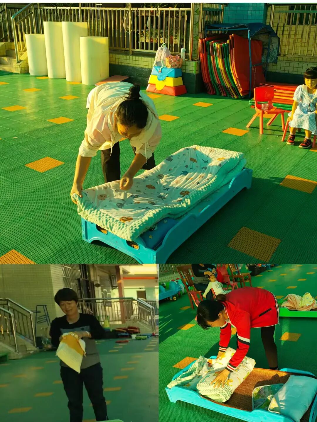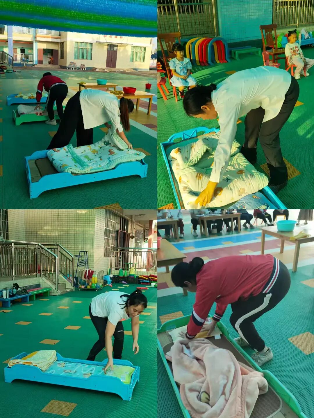 在保育工作中,床铺整理是一项必不可少的技能,叠被子看似简单,却需要一定的技巧和耐心。比赛中,我们见证了保育员们如何巧妙地折叠被子,使其呈现出整齐划一的美观。他们遵循着特定的步骤,从展开、对齐到折叠、整形,每一个环节都显得游刃有余。这不仅是对他们专业技能的考验,更是对他们职业素养的展现。