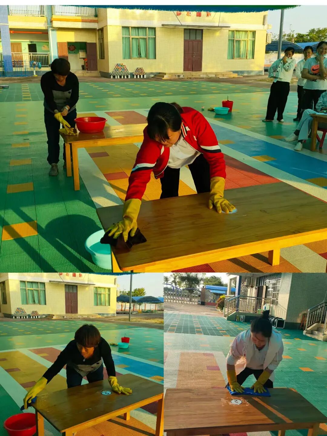 看似普通的桌面清洁工作,其实有着极高的执行标准。对于保育老师们来说,每一次的消毒液配置都需精确无误,既不能过多也不能过少。在清洁桌面的过程中,从擦拭的顺序到方法,再到最后的清洁度,每一步都需遵循“清、消、清”的原则,这不仅是工作流程的规范,更是对孩子们健康负责的体现。