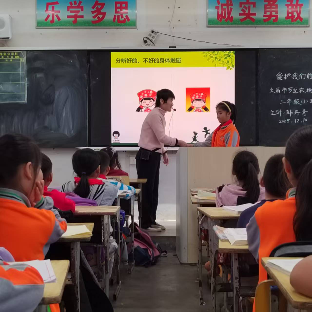 为进一步增强学生的自我保护意识,提升防性侵能力,营造安全、健康的成长环境,文昌市罗豆农场中心小学于2025年12月10日开展了以“爱护我们的身体”为主题的防性侵安全教育课程。引导学生学会辨别、预防与应对性侵害。