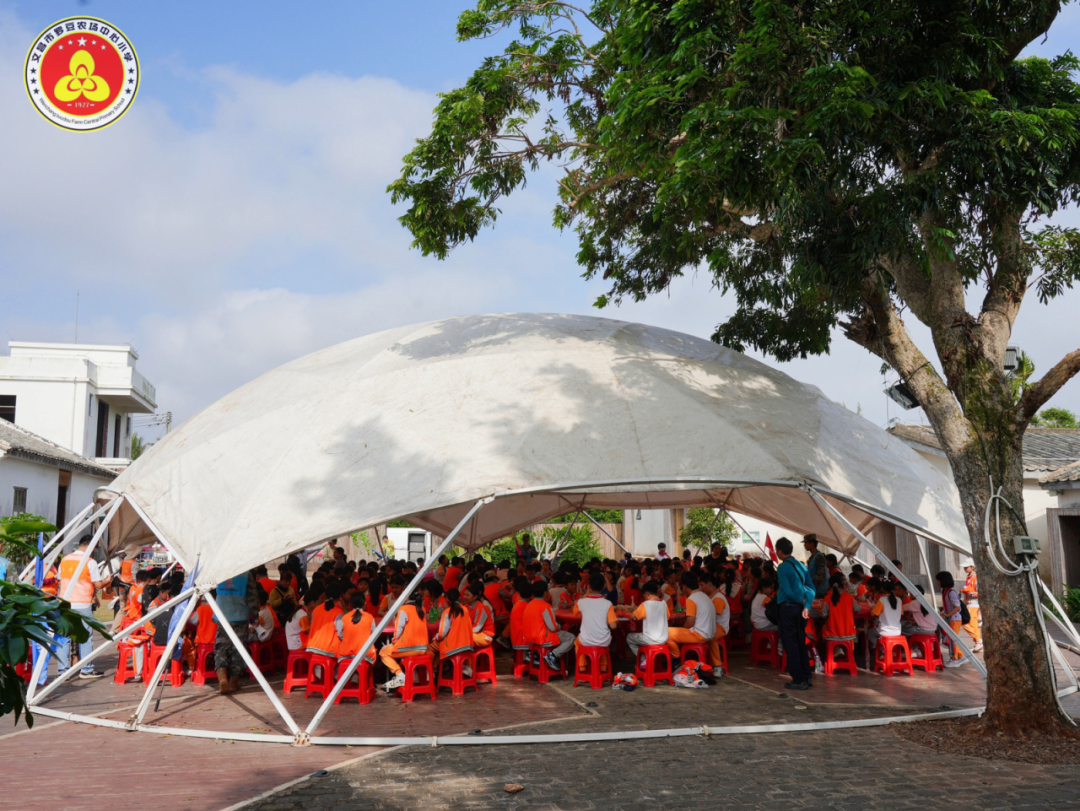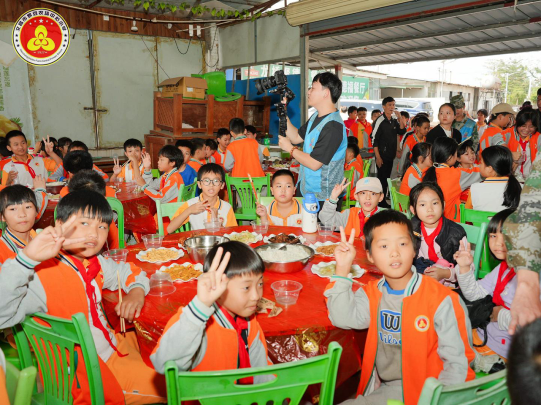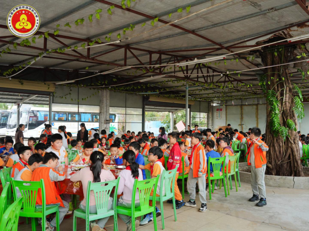 中午,同学们在指定用餐点享用营养均衡的午餐(四荤四素+汤品),餐后短暂休整,为下午的活动储备能量。
