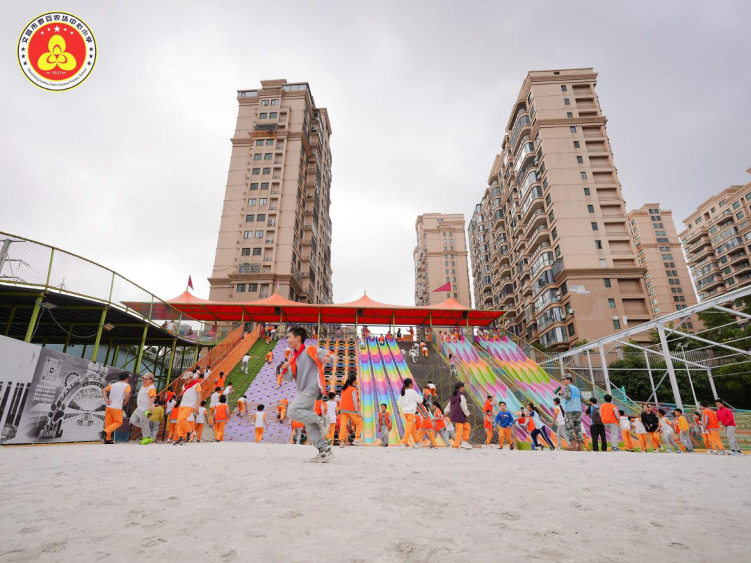 13:30,同学们转场至熊猫无动力亲子乐园。乐园内设有攀爬网、滑梯、秋千、蹦床等50余项无动力游乐项目,集游乐、运动、益智于一体。