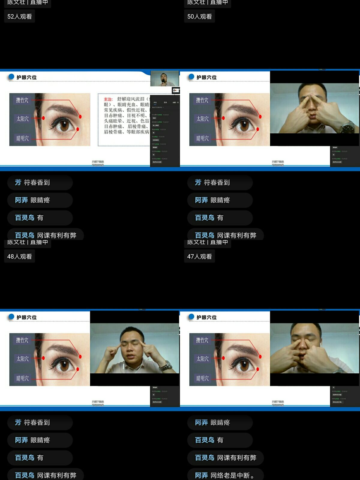 陈老师线上指导教职工揉穴位缓解眼睛疲劳。