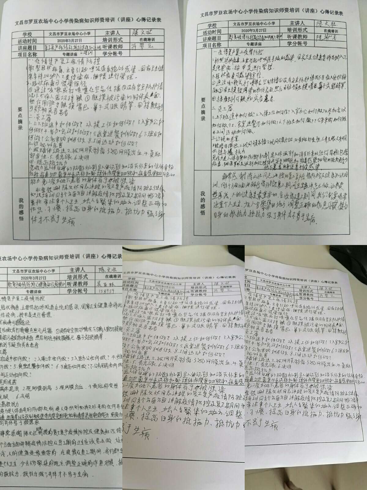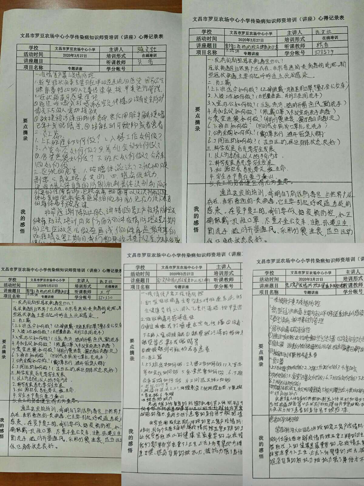 文昌市罗豆农场中心幼儿园教职工“2020年复产复工疫情防控及健康知识线上培训”
