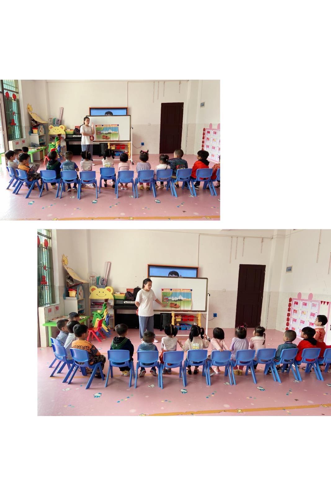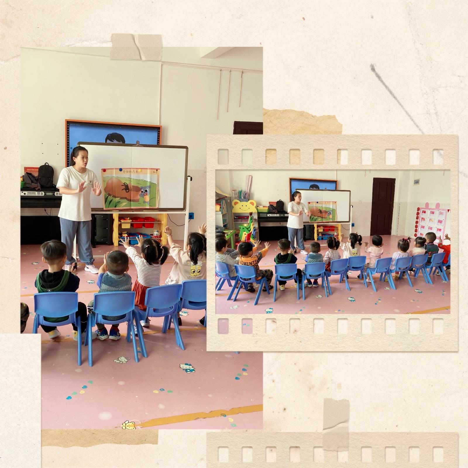 临近放学,孩子们会跟着老师一起歌唱儿歌童谣,分享诗歌故事,既锻炼了胆量又增添了自信!
