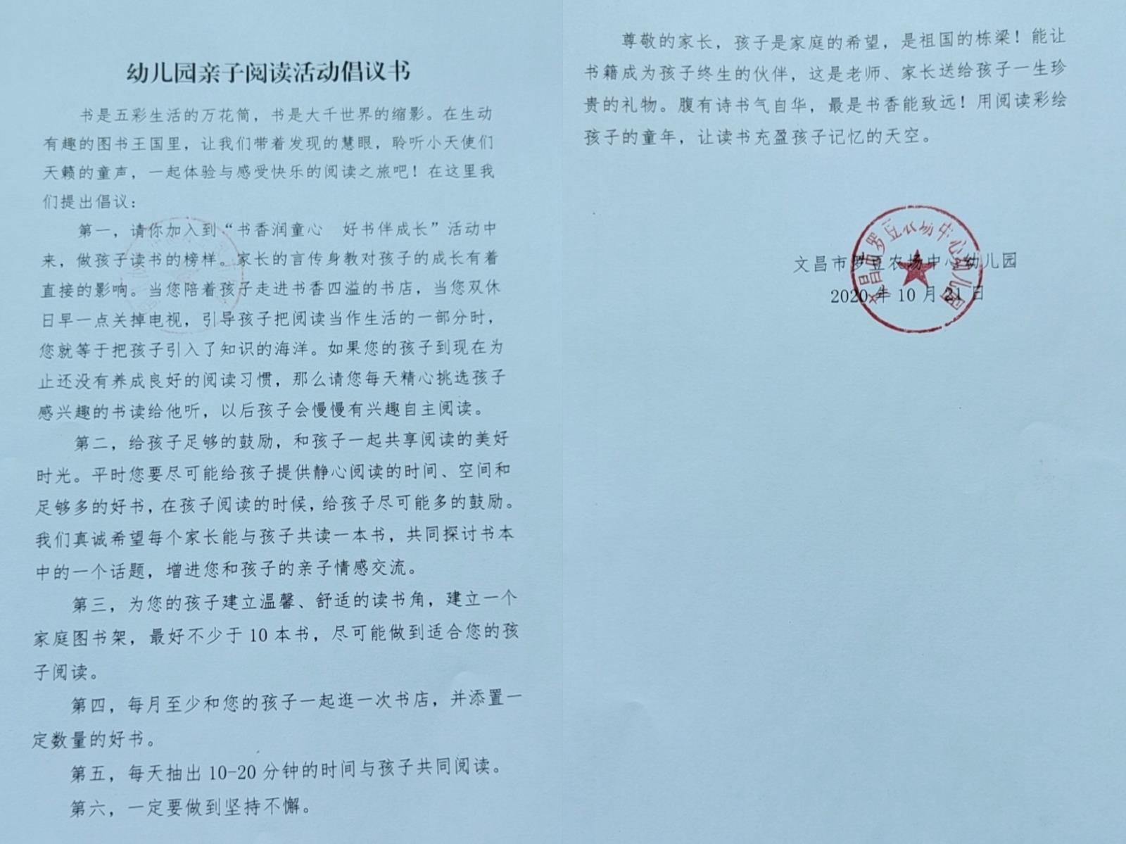 给家长发放阅读活动倡议书