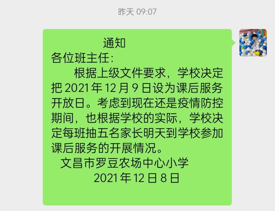 根据《海南省教育厅关于开展“家校联动双减四个一”行动的通知》,结合我校实际情况,学校决定2021年12月9日(星期五)开展课后服务家长开放日活动。
