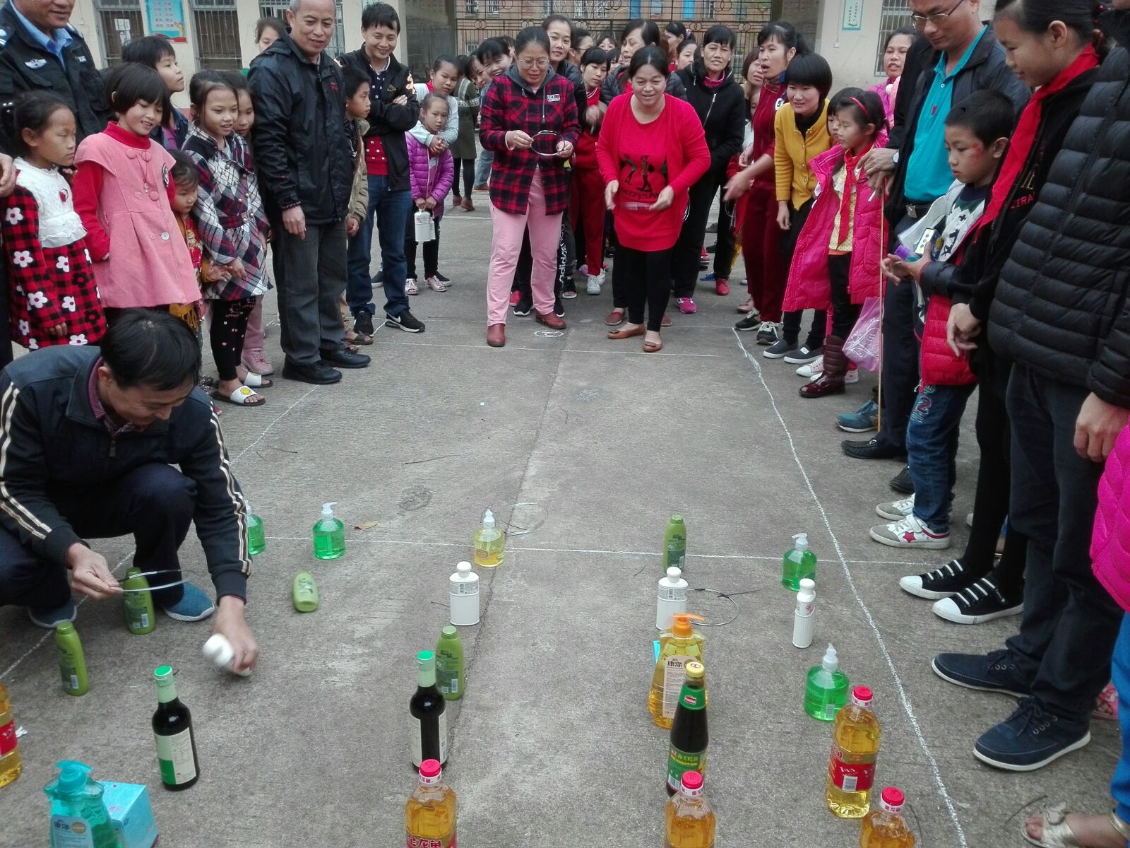 第二个趣味游戏‘’套圈‘’随着裁决员的哨响开始。