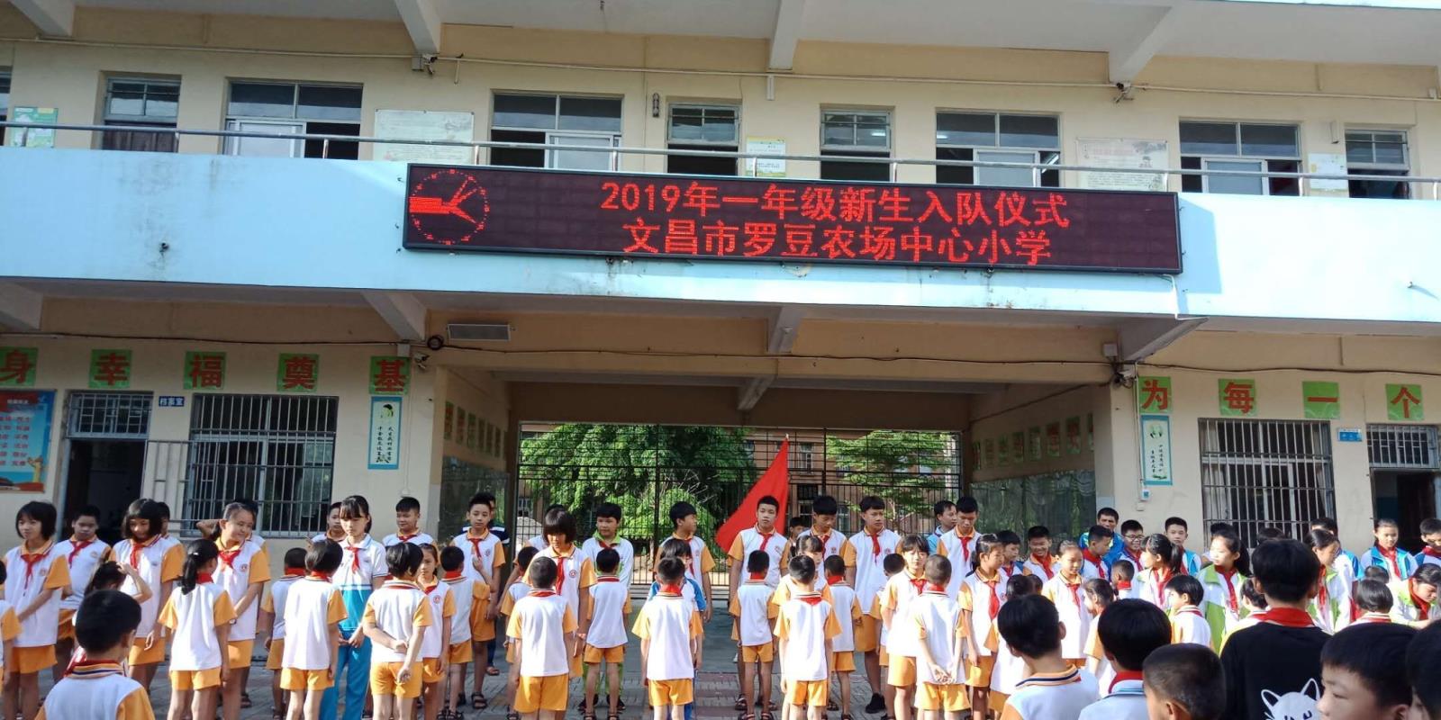 2019年文昌市罗豆农场中心小学新少先队员入队仪式结束。