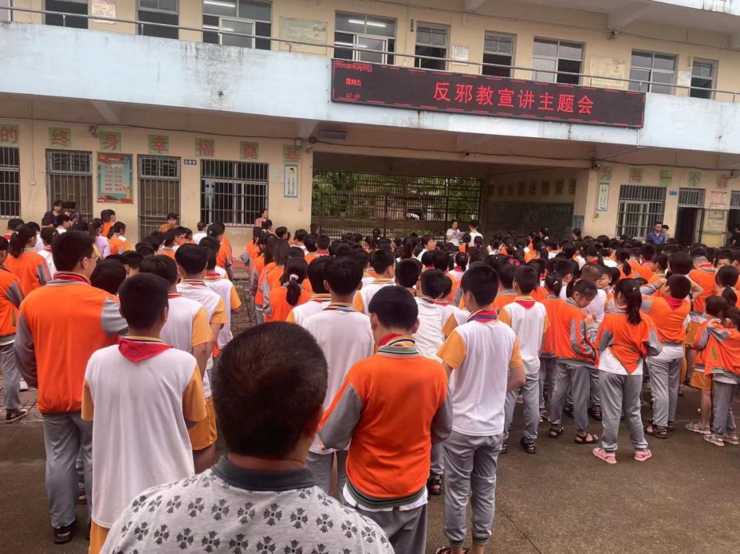2022年5月20日早操后组织全体学生进行反邪教知识宣讲。本次主题宣讲由邓红玉老师负责,邓老师通过什么是邪教、邪教有什么危害、应该如何抵制邪教、案例四方面对全体学生介绍了邪教的危害性。
