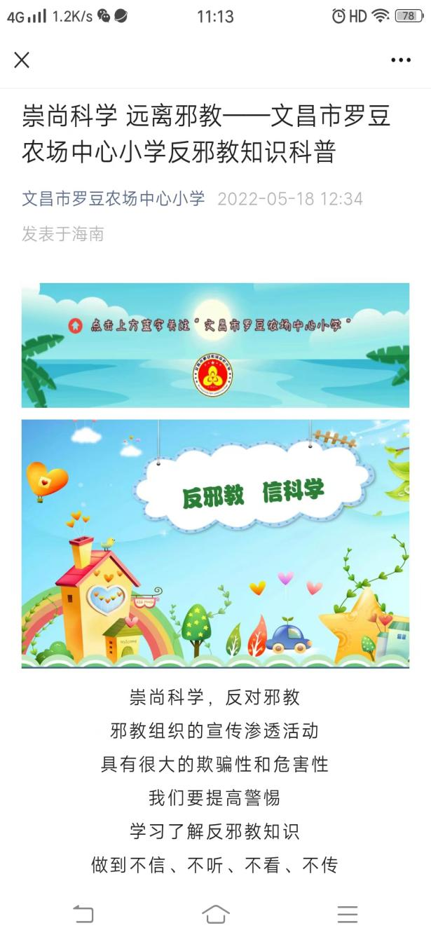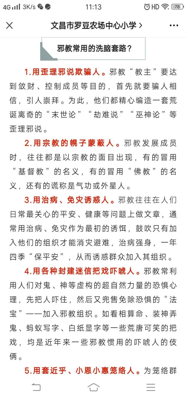 学校于2022年5月18日通过公众号发布反邪教知识科普宣传。增强广大家长及学生对邪教组织的辨别力和防范能力,防止上当受骗。