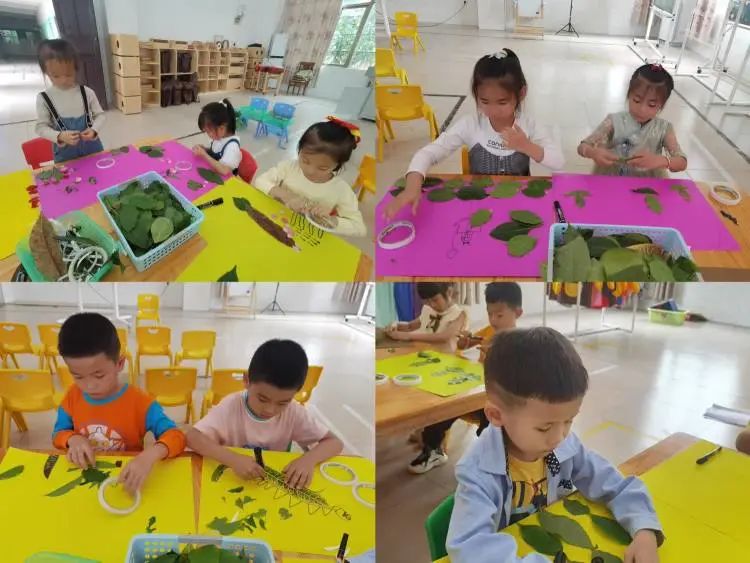 2.尝试用不同形状的叶子拼贴不同的造型,并能表现出物体的主要特征。