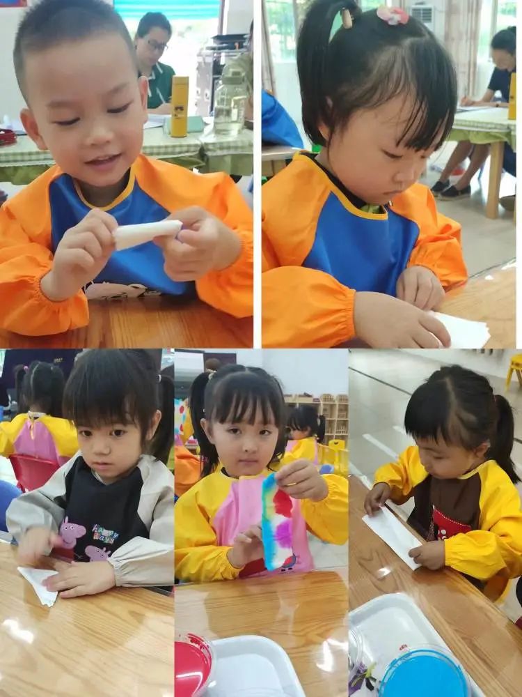 动手操作时刻到了,我们在很认真折纸染色哦!