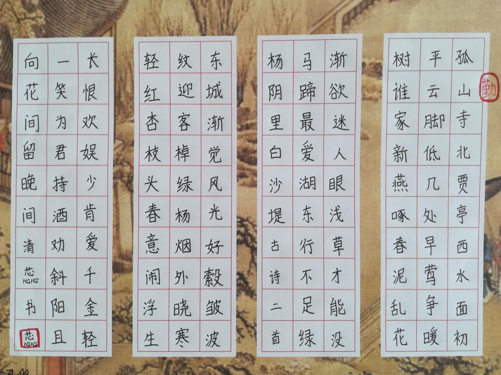 评委老师们从学生的书写笔画笔顺、结构和作品的内容三方面情况综合评估学生的写字水平。最后选出部分优秀作品进行奖励!