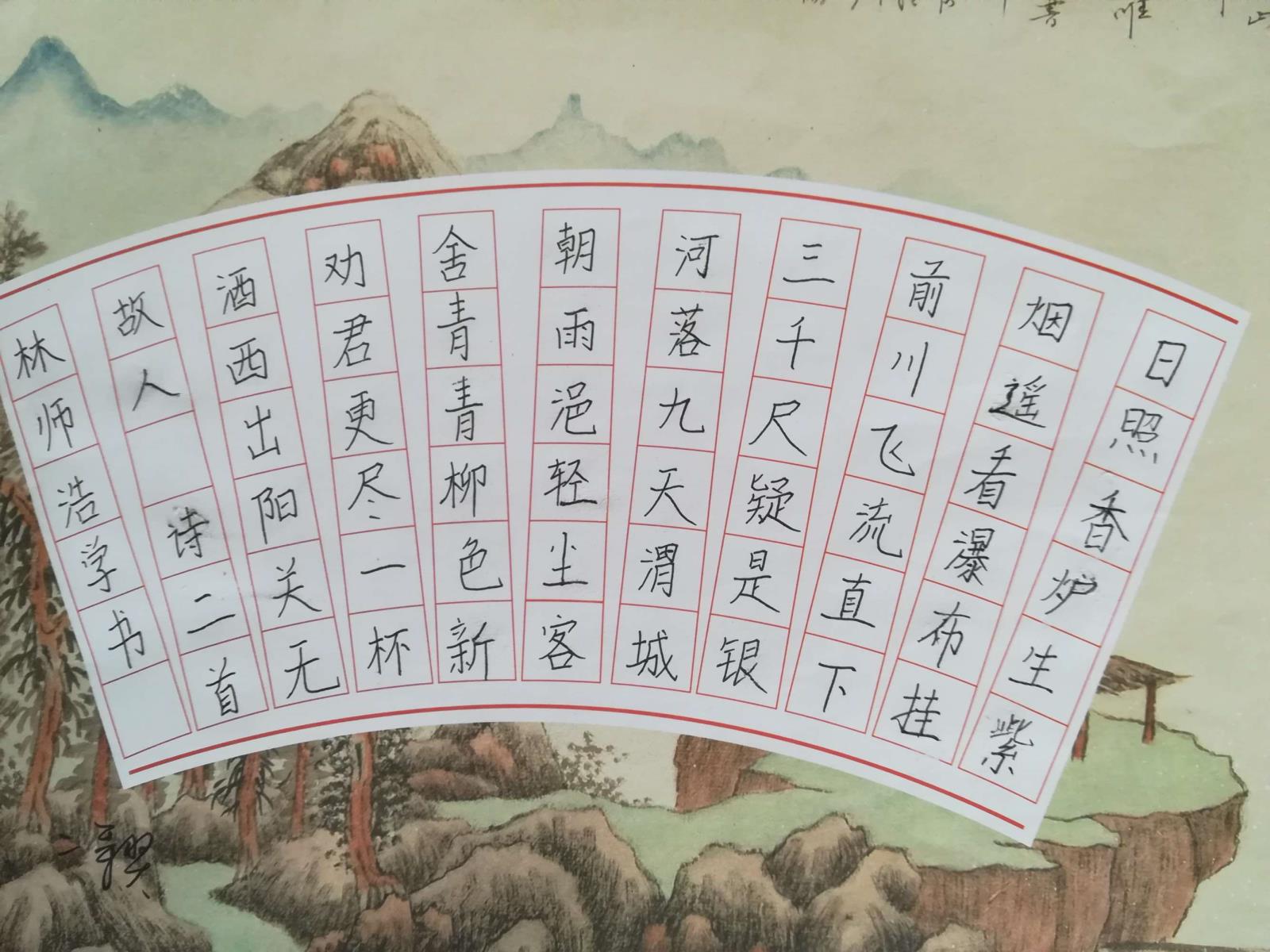 五(1)班李昌盛同学用颜体的笔画,精心地创作着他的作品。棒棒的!