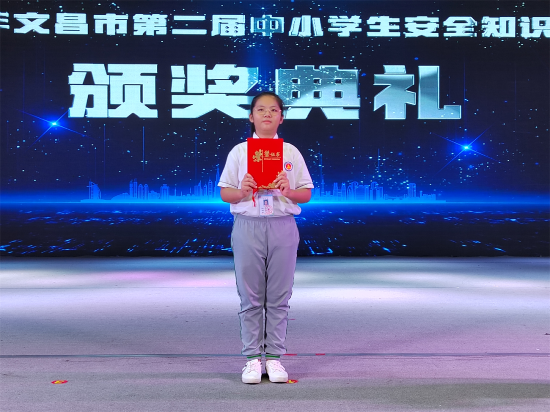 热烈祝贺我校六(1)班郑茜同学在2023年文昌市第二届中小学生安全知识竞赛中荣获小学组三等奖,潘秋娥老师荣获优秀指导老师奖。