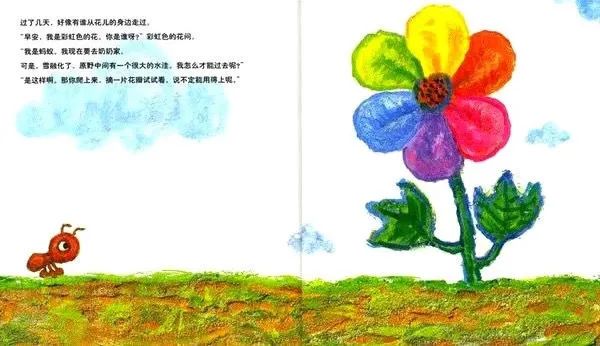 《彩虹色的花》是一本及其优秀的作品, 故事讲的是早春的一天,雪还没有化掉,在原野上突然绽放了一朵彩虹色的花。终于能见到太阳了,她十分高兴,由衷的愿意跟每个人分享自己的快乐。每次路过她身旁的都是一些善良可爱的小家伙,彩虹色的花总是很热情的帮助它们,很慷慨的把她的花瓣一片一片给需要的人,小家伙们都心满意足的走了,彩虹色的花也分享着它们的快乐。