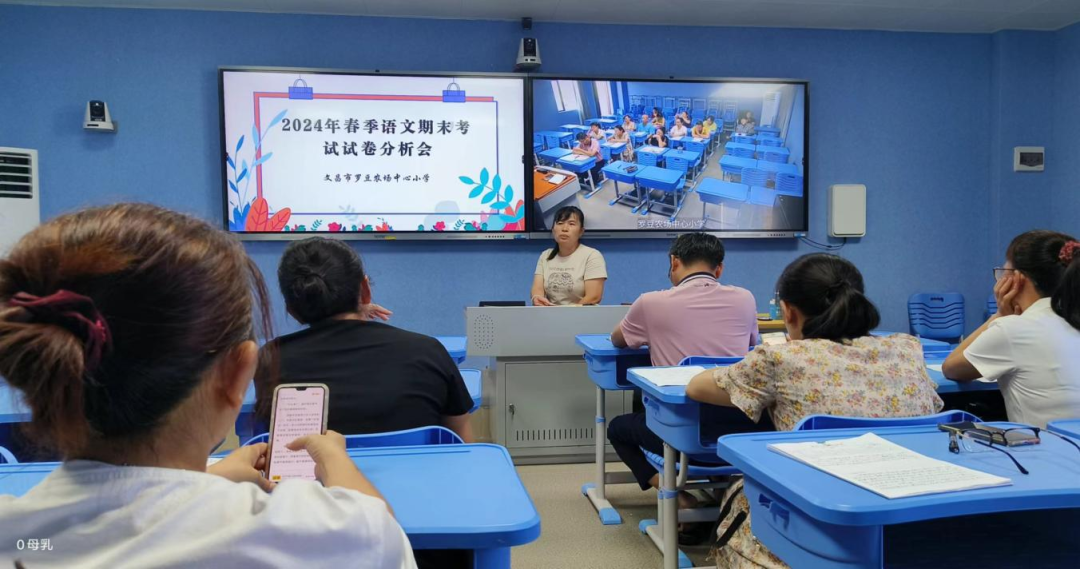 其次由林教导对比分析了2023年春季与2024年春季的语文期末成绩,在对比中找差距,在对比中求进步,也对语文老师提出了新的要求。在平时教学中应该加强学生的读题能力,培养学生检查试卷的习惯,加强学生的书写。从学生做题的过程中找到典型问题,分析原因,共同解决,有针对性的进行培优辅差,关注每一位学生,从而提高学生的语文成绩。