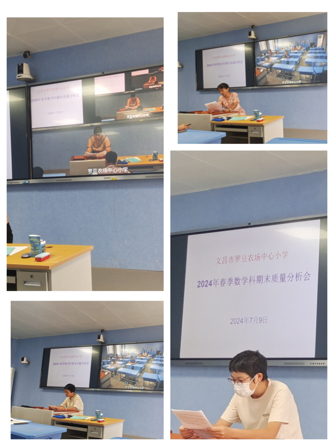 其次由周经辉副校长分析了2023年春季与2024年春季数学科期末质量出入口对比成绩。周副校通过一年入口的数据分析,表扬了一些班级教学成绩比入口时有所提高,也指出了一些班级教学成绩比入口时下降问题。要求所有学科组长要有所作为,认真分析数据,找查问题根源,制定切合学校教学实际的计划,带领全体数学不断查找问题,希盼下学期共同进步。